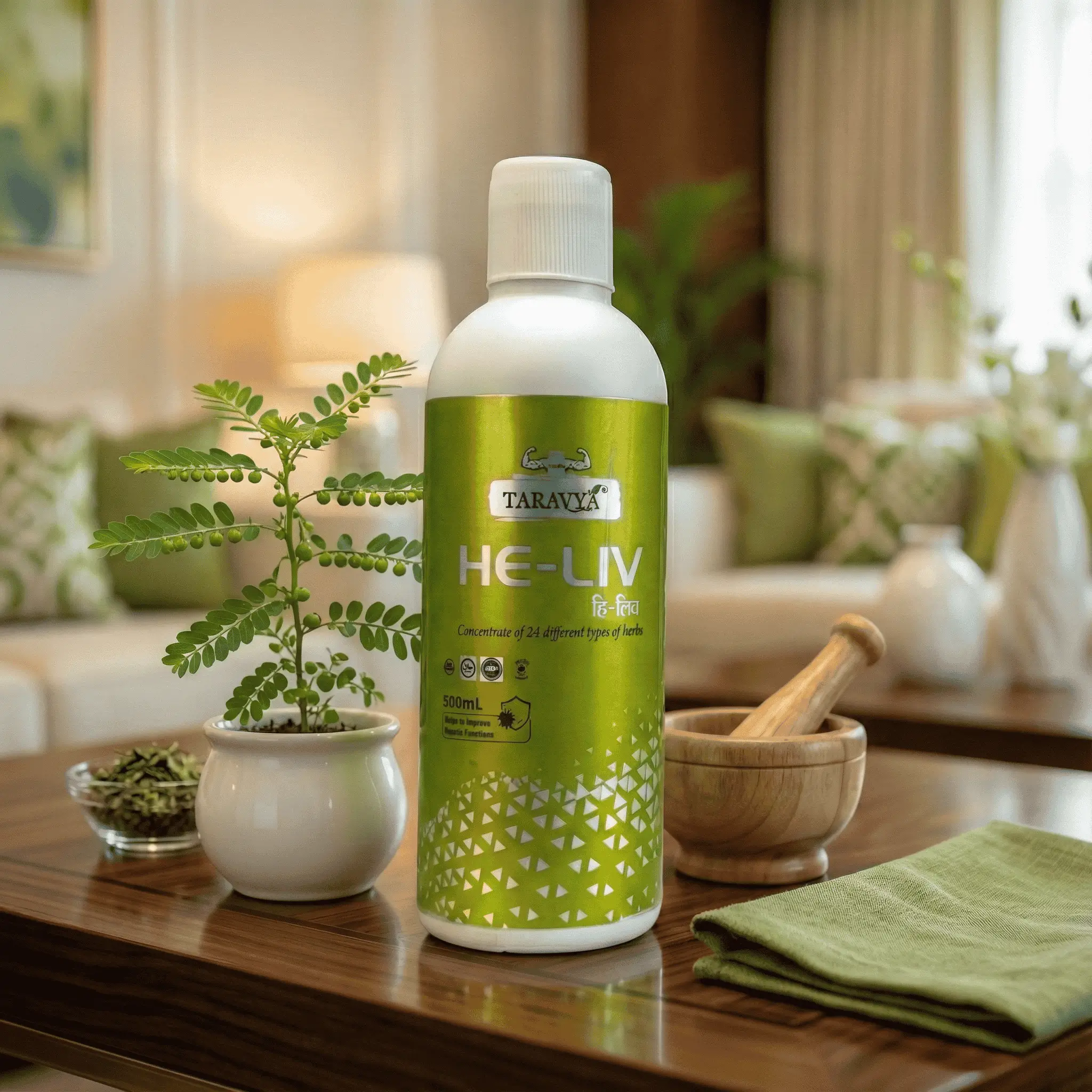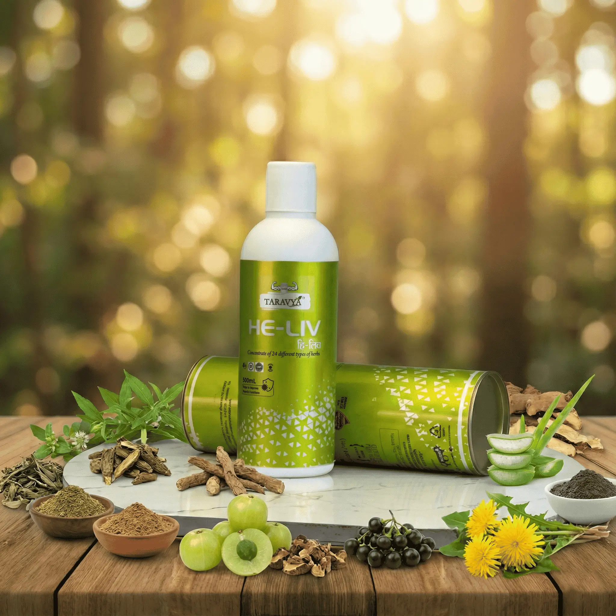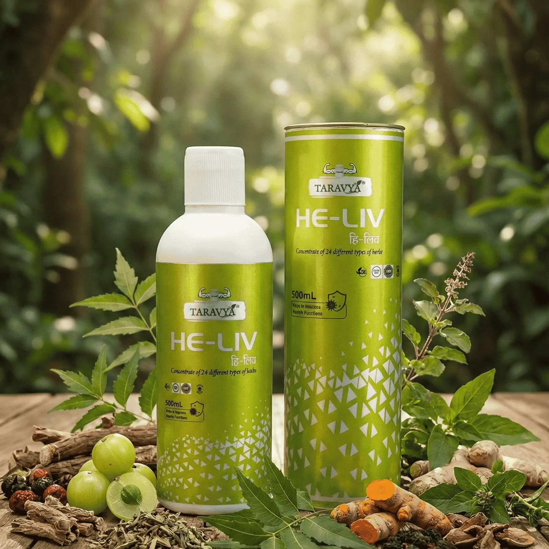 Discover the power of nature with HE-LIV Syrup by TARAVYA, a premium hepato-protective (liver-protecting) solution meticulously crafted to support and maintain your liver health. This unique Ayurvedic formulation is a potent concentrate of 24 scientifically researched herbs, each chosen for its traditional benefits in promoting optimal hepatic function.